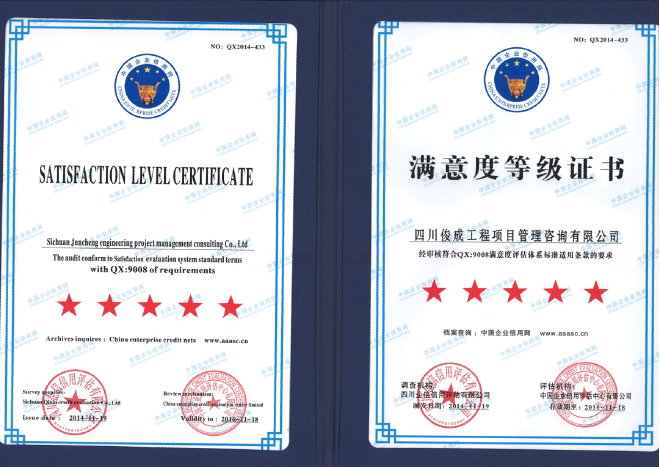 俊成建昱工程集團有限公司始建于二零零九年二月,中凱俊成建設咨詢有限公司為旗下子公司,公司分別位于四川省成都市成華區(qū)、德陽市凱州新城,公司注冊資本5000萬元人民幣。中凱俊成通過了ISO9001質量管理體系、ISO14001環(huán)境管理體系、ISO45001職業(yè)健康安全管理體系認證。 公司目前具有工程監(jiān)理綜合資質,工程造價咨詢甲級資質,工程招標代理甲級資質,冶金行業(yè)(冶金礦山工程) 甲級設計.....[詳情]